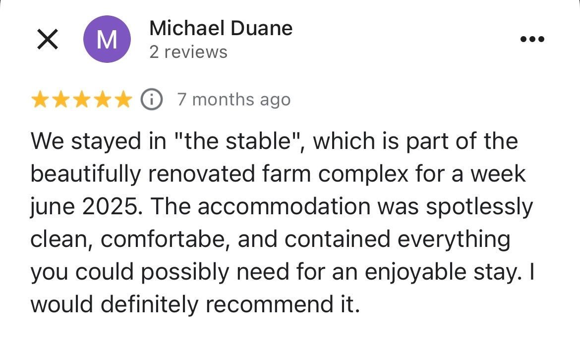 10 out of 10 (Booking.com - 2024 - The Stable)