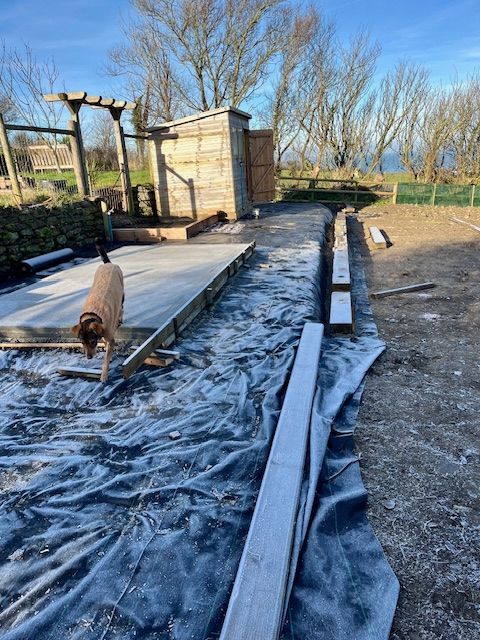 On a much more enjoyable note work started on moving the polytunnel, creating a new base for a greenhouse and building a large covered shed area. The idea is also to have a number of small manageable raised beds and a dedicated compost area - rather than a massive pile that sprawls to cover a vast area that seems to spreads like lava! As many of you know I try to grow all the flowers for the barns and having the allotment area well designed will make life so much easier and enjoyable. It will also mean I can take cutting and grow on plants for the gardens. However, work on the allotment area has been slowed by the weather (it feels like we had four seasons in two months!) and it was literally like being in a bog when we started in November but the dogs loved it as evidenced by all the dirty paw prints on my slate floors!